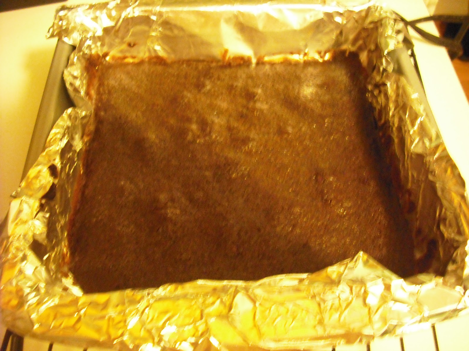 Tonight I made a quick chocolate bar base for bars I will finish making tomorrow. This is just a simple, easy brownie-type base for some chocolate squares that will be filled and iced. The base for these bars takes about fifteen minutes to make, twenty max. They are so easy, and if you want, you can use this base for brownies, ice cream sundaes, strawberry shortcakes or just eat it plain! It is so easy and simple to remember. Once this base cools, it will be cut in half horizontally, filled with a vanilla filling, and topped with a chocolate icing. Here is the recipe for the base: