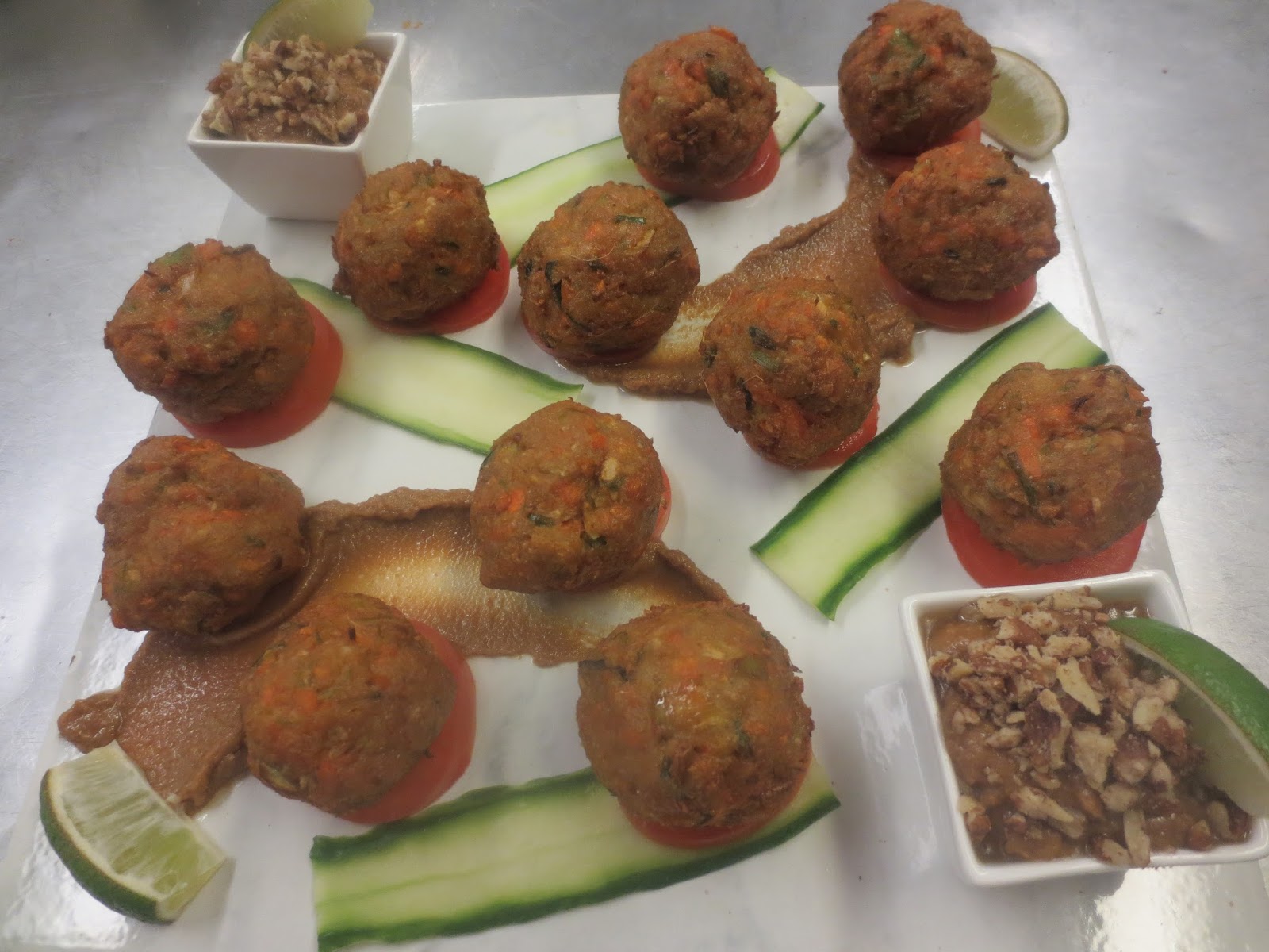 Form dough into balls - you can make them as large or as small as you want, for a bite-sized hors d'oevure or a larger appetizer plate. I got about 42 from my batch. You can chill the mixture before or after rolling into balls or both, as chilling may help them stay together. When ready to cook, fry in a deep fryer until golden and crisp on the outside.